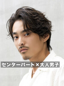 髭ありセンターパートは、髪型だけでなく“顔の印象”まで含めたデザインで、髭の渋さとセンターパートの清潔感をバランス良く見せるのがポイントです。髪をラフにしすぎるとワイルドに寄り過ぎるので、トップは適度に動かしつつ、全体は整えると大人っぽくまとまります。