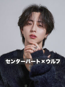 ウルフのセンターパートは、トップ〜顔まわりは軽く動かしつつ、襟足を残して“段差(レイヤー)”でシルエットを作るタイプです。首元が締まって見えるので、横顔がきれいに見えたり、小顔効果を狙いやすいのが強み。
