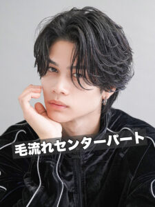 毛流れセンターパートは、パーマで強く動かすというより、乾かし方と軽いスタイリングで“自然に流れる”形を作るセンターパートです。分け目からふわっと立ち上げて、毛先を後ろに流すことで清潔感が出ます。