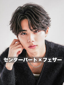 重めで長めのセンターパートにマンネリを感じてきたら、次に試したいのが**フェザーパーマ×センターパート**。