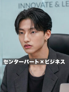 ビジネス向けは、センターパートでも清潔感と信頼感を最優先にした設計です。サイドは膨らまないように収め、襟足もすっきりさせて、前髪は目にかからない長さや流れに調整します。